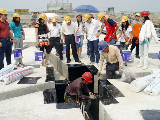 青龍公司自粘卷材預(yù)鋪反粘施工工藝的大量應(yīng)用,徹底顛覆了傳統(tǒng)材料直接施工于墊層的工藝。如番禺祈福新村,中山新中醫(yī)院的地下室防水工程,皆是采用預(yù)鋪反粘。在中醫(yī)院新址地下室施工過程中,我公司先后組織了開發(fā)商、設(shè)計師、建筑單位等大批人員進(jìn)行現(xiàn)場觀摩學(xué)習(xí),了解這一先進(jìn)工藝,促進(jìn)預(yù)鋪反粘的進(jìn)一步推廣。