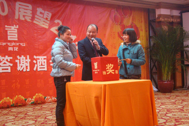 會(huì)上,青龍公司重點(diǎn)表彰了優(yōu)秀代理商代表和企業(yè)優(yōu)秀員工,其中對(duì)廣西青龍公司曾知博經(jīng)理個(gè)人銷(xiāo)售管理績(jī)效獎(jiǎng)金高達(dá)12.8萬(wàn)元,曾總發(fā)表感言說(shuō),青龍公司是個(gè)一個(gè)重信譽(yù),講誠(chéng)信,有實(shí)力的企業(yè),非常感謝青龍能給自己這樣一個(gè)實(shí)現(xiàn)自我價(jià)值的平臺(tái),并表示愿意和廣西青龍廣大同仁一起努力拼搏,2011年再創(chuàng)輝煌。