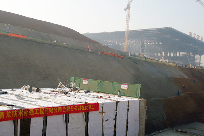 近日,地鐵工程方面再次傳來捷報,青龍防水補強公司合肥分公司承接南京南站防水工程,目前正在進行的施工部位為明挖隧道,施工面積已超3萬㎡。