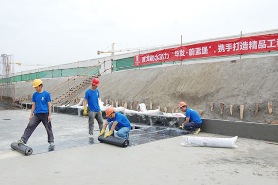 本項目采用了青龍DMBAC雙面自粘防水卷材,包括地下室、側(cè)墻、頂板等部位的所有防水工程,總施工面積近40萬平米,竣工時間預(yù)計為今年6月,屆時將共同見證青龍產(chǎn)品和施工技術(shù)的精良品質(zhì)。