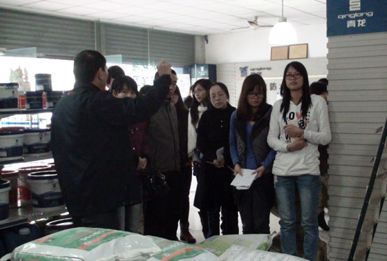 隨后,徐工帶領(lǐng)大家到總部樓下的門市部進(jìn)行參觀,詳細(xì)地講解了青龍公司生產(chǎn)的CQ101、CQ103、CQ104、OT801、耐裂威、橡膠止水帶、克滲王、PCM高分子復(fù)合自粘防水卷材等產(chǎn)品的規(guī)格、防水原理、施工方法等,給大家做了一次詳細(xì)的產(chǎn)品知識(shí)普及。徐工精彩的講解贏得了大家熱烈的掌聲,不少員工都表示,對(duì)公司的產(chǎn)品有了一個(gè)系統(tǒng)的認(rèn)識(shí),對(duì)今后的工作將大有裨益。