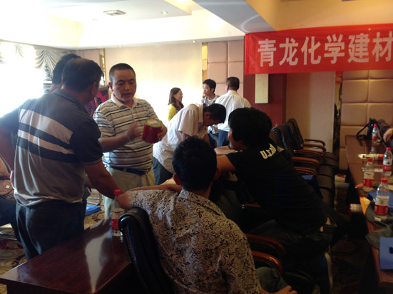 會(huì)議結(jié)束后,針對大家提出的“怎樣的材料是綠色環(huán)保的”,“怎樣的施工工藝是綠色環(huán)保的”,“綠色施工在PCM反應(yīng)粘新品上有什么樣的體現(xiàn)”等問題,徐總一一做出詳細(xì)的解答,并與大家做了詳細(xì)交流。青龍公司向與會(huì)人員贈(zèng)送CQ101水固化聚氨酯防水涂料,并對照GRC樣品進(jìn)行詳細(xì)解說,交流會(huì)現(xiàn)場確定了涼山州五縣代理商。