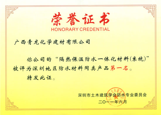 隔熱保溫防水一體化材料(系統(tǒng))"被評(píng)為深圳地區(qū)防水材料同類(lèi)產(chǎn)品一名,