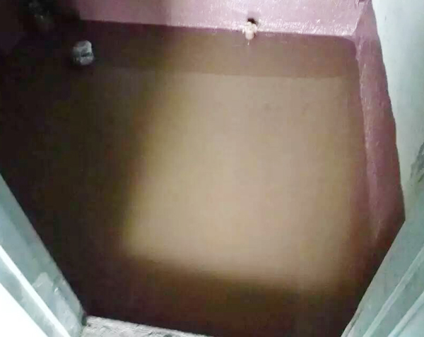 在閉水試驗過程中,施工人員對干涸后的樣板進行注水,深度超過標準的20mm。在經(jīng)過48小時的閉水后,檢測人員按規(guī)定對樓下天花和立墻進行檢測。檢測表明天花及立墻部位均無破損及滲水現(xiàn)象,閉水試驗合格通過。