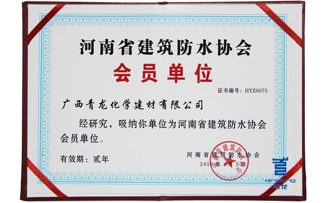 青龍公司獲得河南防水協(xié)會會員證書