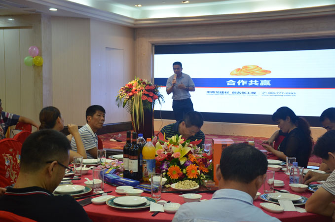 在答謝午宴上,賓客滿席,董老板、青龍營(yíng)銷總監(jiān)賀總、青龍家裝營(yíng)銷于總、青龍質(zhì)量總監(jiān)張總和專賣店技術(shù)工程師周工分別上臺(tái)進(jìn)行了分享。午宴中還穿插了精彩的文藝節(jié)目和豐富的活動(dòng),將現(xiàn)場(chǎng)氛圍推向高潮。廣大來(lái)賓在一片歡聲笑語(yǔ)中,不僅學(xué)習(xí)了更多的創(chuàng)業(yè)經(jīng)驗(yàn)和防水知識(shí),也拓展了人際網(wǎng)絡(luò),愉快地度過(guò)了這個(gè)美好的正午。