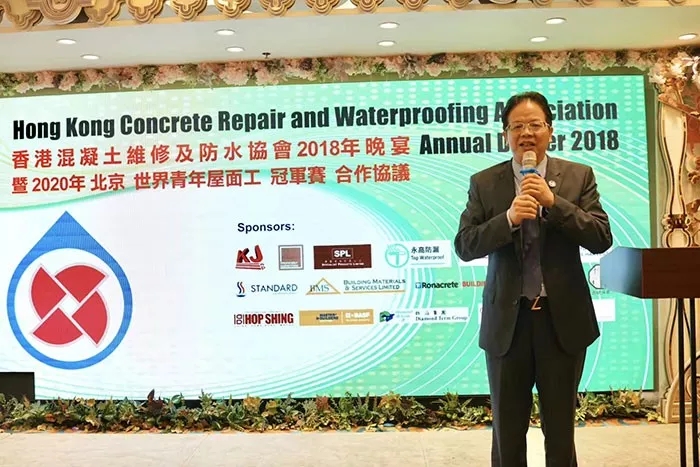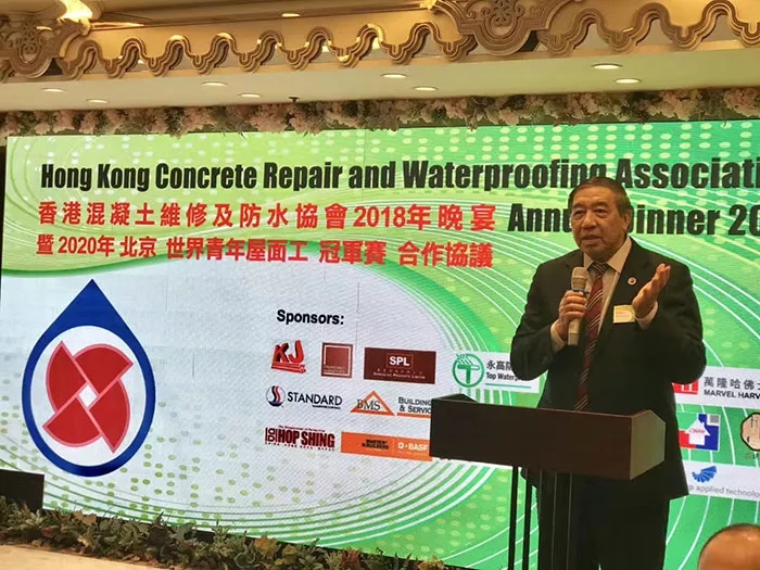 9月13日,值香港混凝土維修及防水協(xié)會(以下簡稱HKCRWA)2018年會及成立第三十二周年紀(jì)念晚宴之際,兩岸四地(中國大陸、中國香港、中國澳門、中國臺灣)防水協(xié)會及相關(guān)領(lǐng)域領(lǐng)導(dǎo)人、嘉賓在香港九龍新港中心濟濟一堂,就分別組團參加2020年北京第28屆世界青年屋面工冠軍賽等事宜達(dá)成共識。