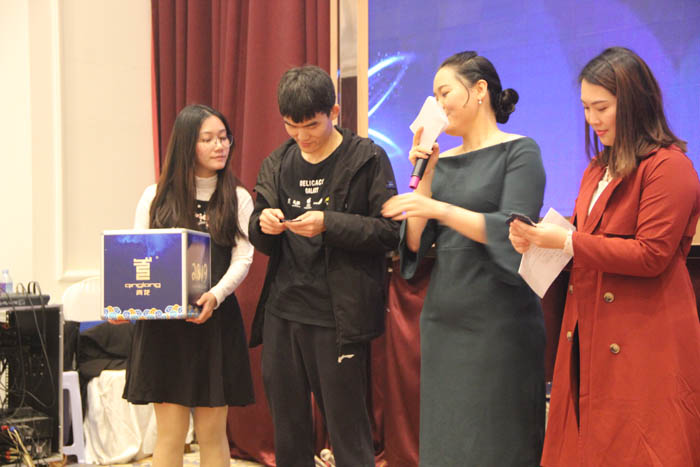 除了精彩的文藝節(jié)目,更讓人充滿期待的當然是晚會標配的抽獎啦!今年公司為大家準備了微信搖一搖、精美實物獎勵、微信紅包和現(xiàn)金紅包等等多項多種大獎,主持人每一次的報獎都讓大家小心臟撲通撲通的跳,充滿希望,中獎?wù)呦膊蛔詣?!一輪又一輪大獎也將年會推向高潮,大家都非常的興奮,歡快!