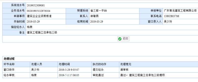 ▲青龍獲得建筑工程施工總承包三級(jí)資質(zhì)