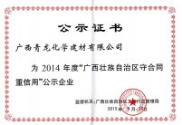 青龍廣西公司誠信守約,榮獲2014年度廣西壯族自治區(qū)“守合同重信用企業(yè)”