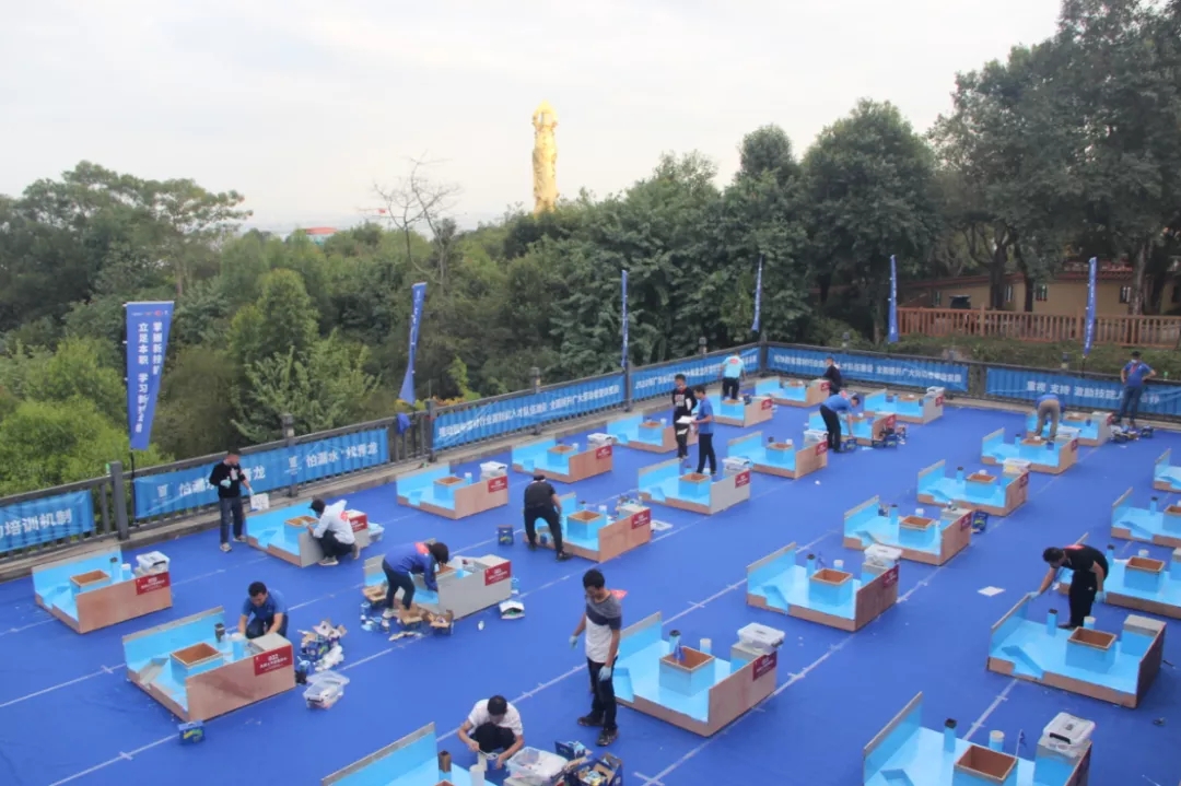 實操比賽分為衛(wèi)生間防水、美縫、免砸磚補漏,金屬坡屋面和伸縮縫防水,平屋面防水三個項目。每個項目的參賽選手個個精神煥發(fā),技術(shù)熟練,在風(fēng)景優(yōu)美的蓮花山比拼,也自成一道亮麗的風(fēng)景線,相得益彰,更吸引了大量游客圍觀,駐足觀摩。