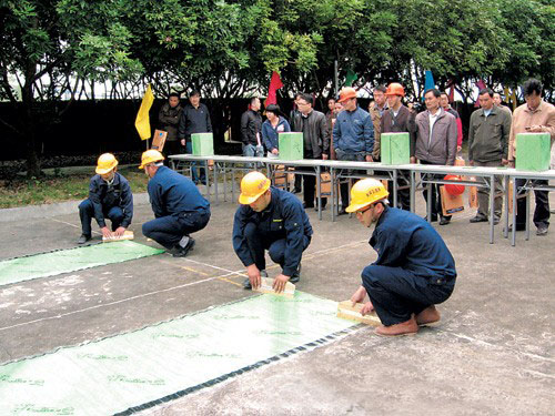 防水材料與施工工藝示范觀摩會。當(dāng)日上午9時許,觀摩會現(xiàn)場工作人員展示防水施工現(xiàn)象,吸引了全場300多名參觀人員的眼球。主辦方通過展示各種防水材料在陰角、陽角、及管根邊等易滲、漏水的細(xì)部節(jié)點(diǎn)規(guī)范化施工工藝,推行標(biāo)準(zhǔn)化施工工藝以及簡單可靠的防水驗收方法,為在場的參觀人員上了生動的一課。