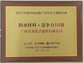 熱烈慶祝青龍入選2017年度中國(guó)房地產(chǎn)防水材料類(lèi)競(jìng)爭(zhēng)力供應(yīng)商