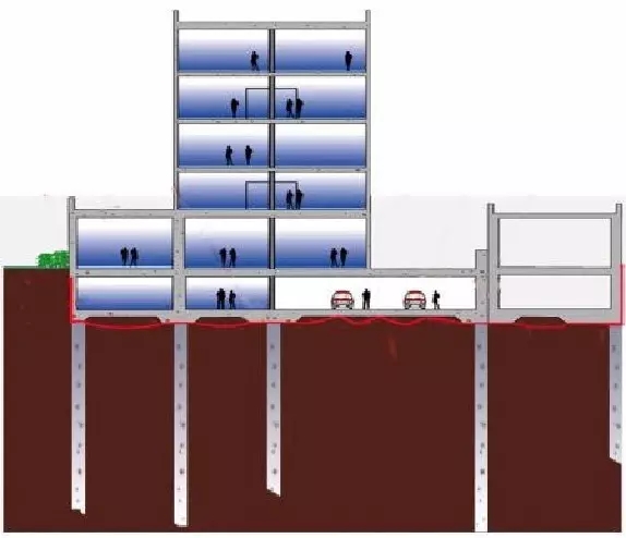 地下室底板防水做法三:防水層反粘于上面的保護(hù)層