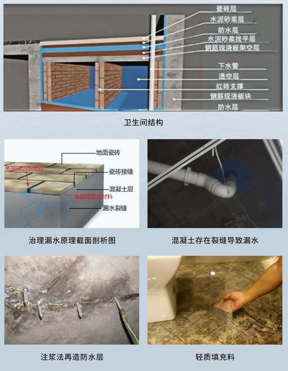 度的高分子凝膠,實(shí)現(xiàn)快速堵漏的效果。丙烯酸鹽免砸磚施工成本低、無噪音、無污染,是免砸瓷磚漏水維修優(yōu)選材料。