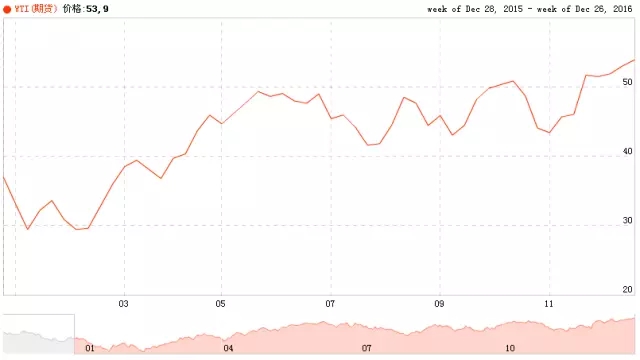 圖 2016年WTI價(jià)格變化趨勢