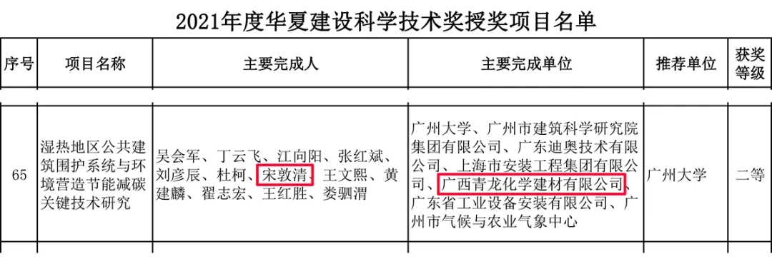 喜訊|青龍榮獲2021年華夏建設科學技術獎