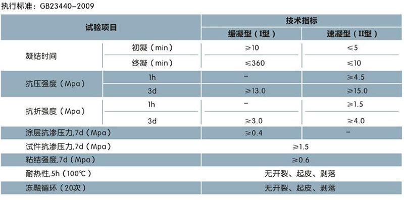 ② 本產(chǎn)品為速凝型,用于滲水面和漏水孔、洞、裂縫的防潮防水堵漏。
